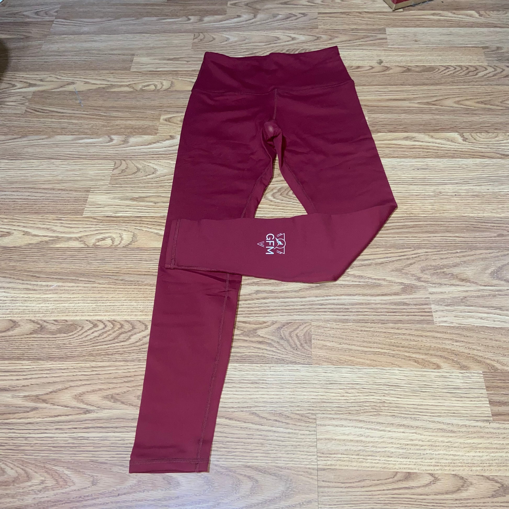 GFM text on the Left calve area. Super comfy and stay put during any workout.